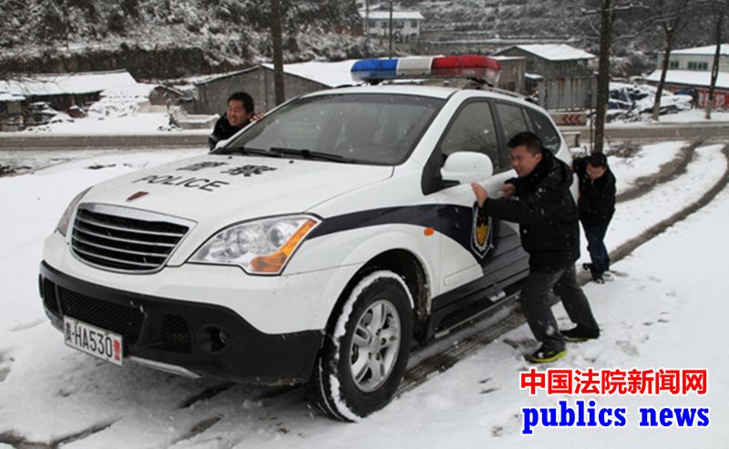 法官冒着风雪下乡巡回审理行政案