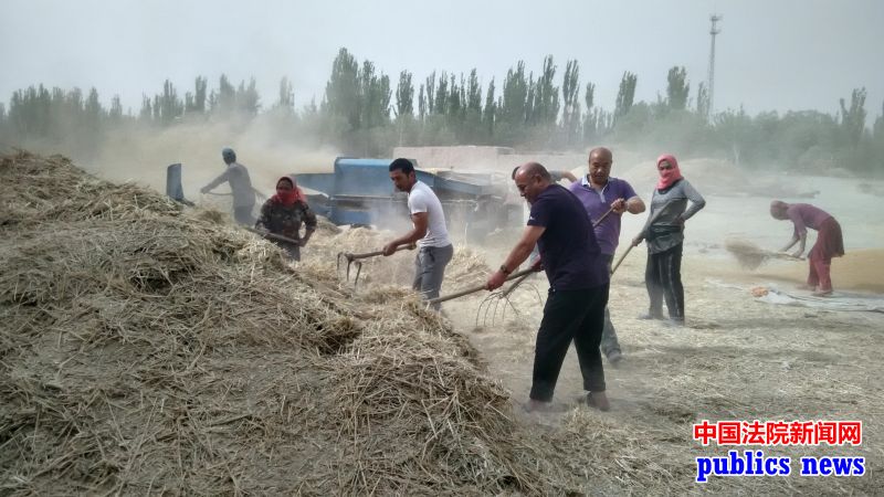公众全民讯(王新科)为进一步提高群众安全生产意识,防范安全事故的发生,6月17日,喀什中院住牙甫泉镇17村工作组在小麦扬场作业现场,宣传安全生产知识,并力所能及地帮助村民进行扬场作业,得到群众好评。