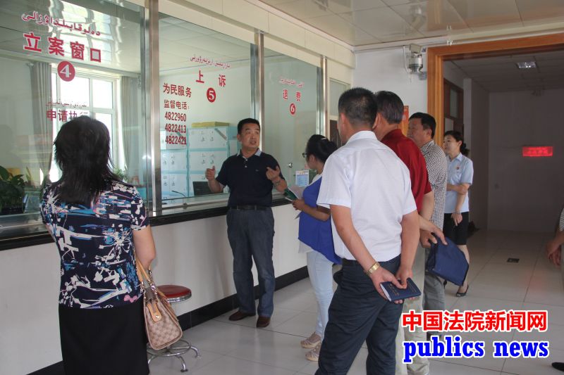 调研组首先视察了该院立案大厅,查看了立案窗口、信访接待室、调解室,翻阅了立案宣传资料,向立案工作人员询问了当日的立案情况。