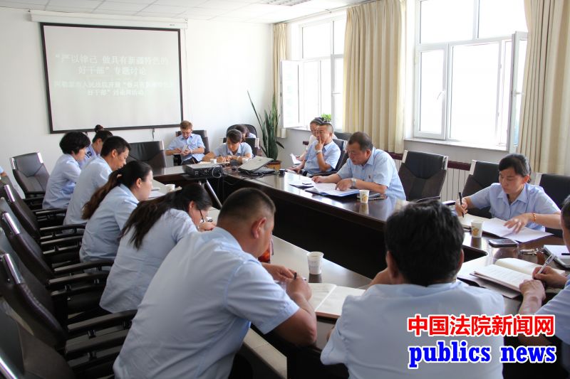 全民公众讯(贾·敖云格)7月30日,阿勒泰市法院根据张春贤书记提出“做具有新疆特色的好干部”的要求,结合“三严三实”和第十七个党风廉政建设教育月活动,开展以“严以律己 做具有新疆特色的好干部”为专题的大讨论活动,院党组班子成员、全体党员及各庭室长参加了此次讨论。