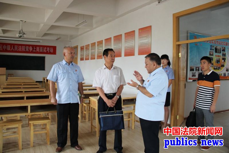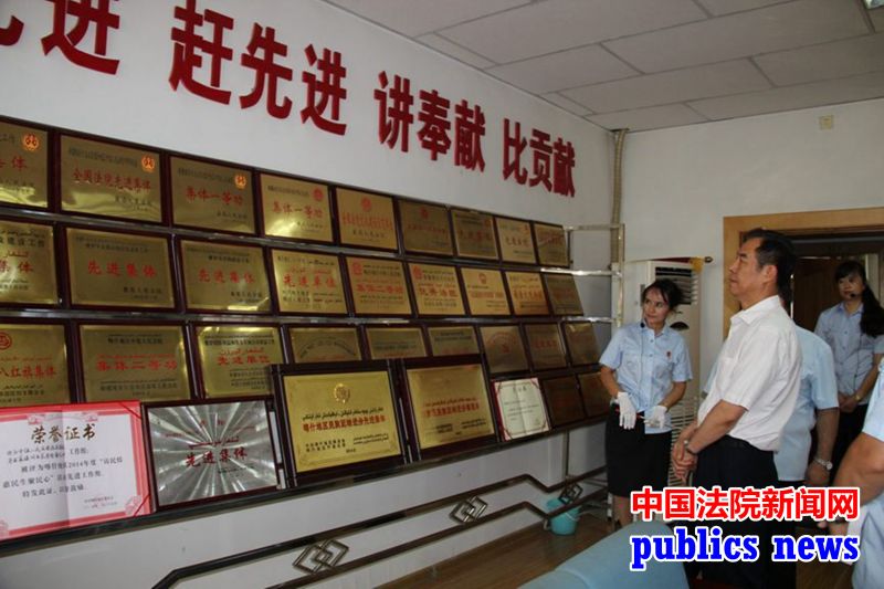 自治区高院宣教处处长于会堂参观喀什中院精神文明活动室。