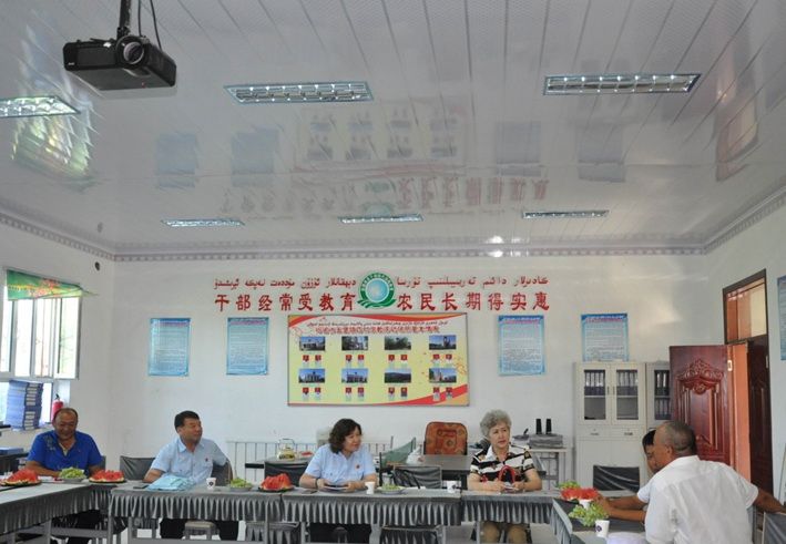 在五堡镇其格尔提麻克勒克村“访惠聚”工作组住地,丽捍一行与工作组成员、村支部书记进行深入交流,了解了当地社会情况、居民生活水平、村民受教育深度等内容。她说到,五堡镇虽地处偏远,工作条件较为艰苦,但是工作组能够克服困难,积极配合当地党委、政府做好各项工作,这是值得肯定的。同时,丽捍院长提到,针对相对薄弱的党建工作,工作组要加强党支部建设工作,通过党组织的建设加强凝聚力,发挥党组织的战斗堡垒作用,为推进新农村建设作出积极贡献。在工作中遇到困难要及时向院党组汇报寻求帮助,要在当地实实在在为村民做好工作,住在村里,住进村民心里。